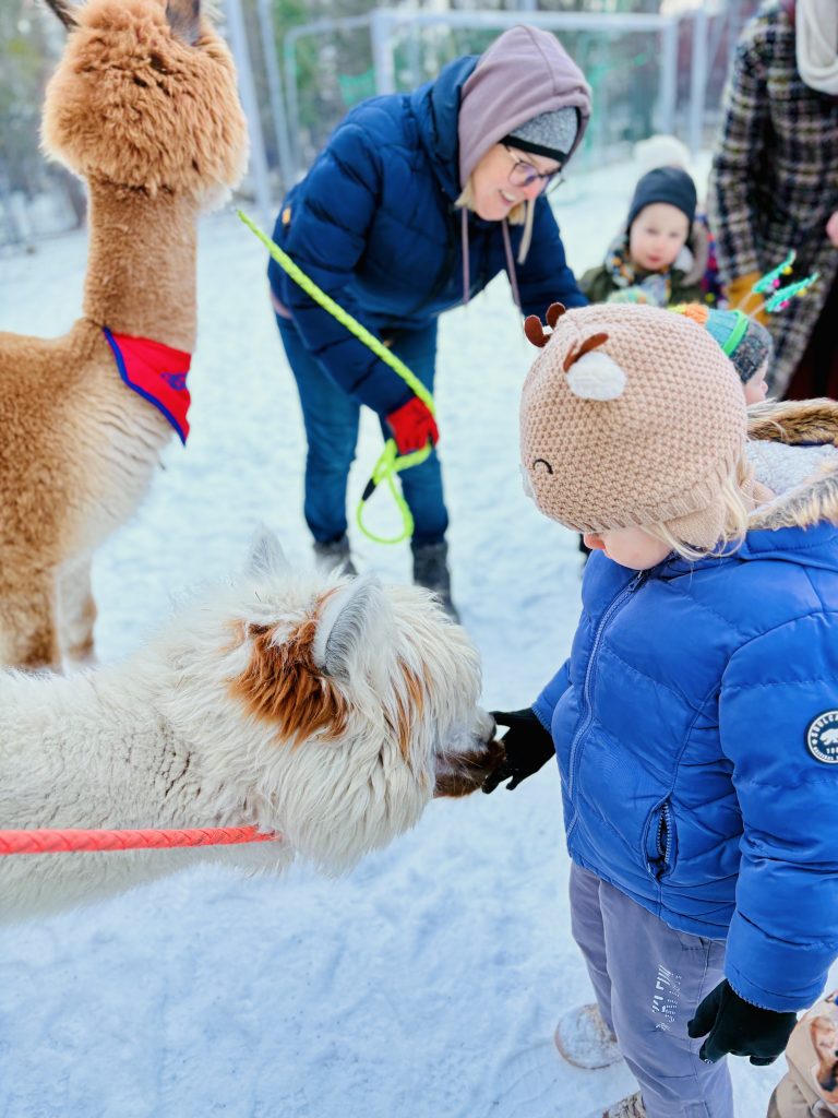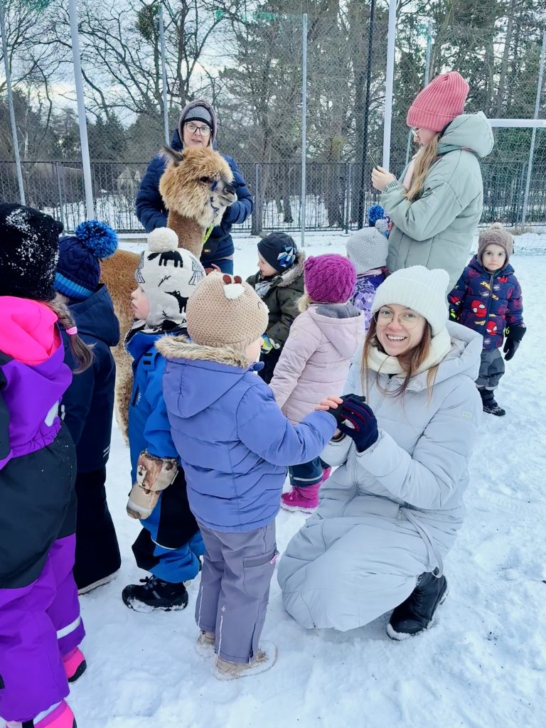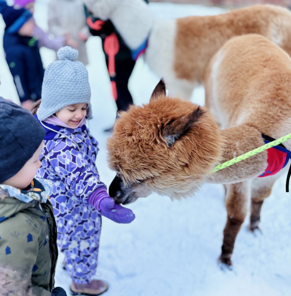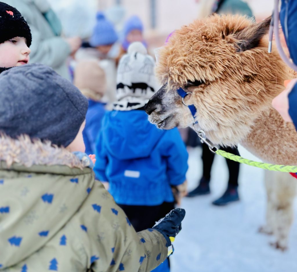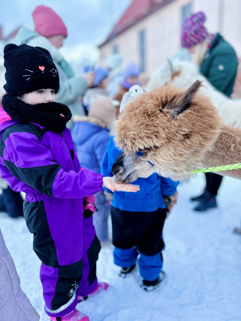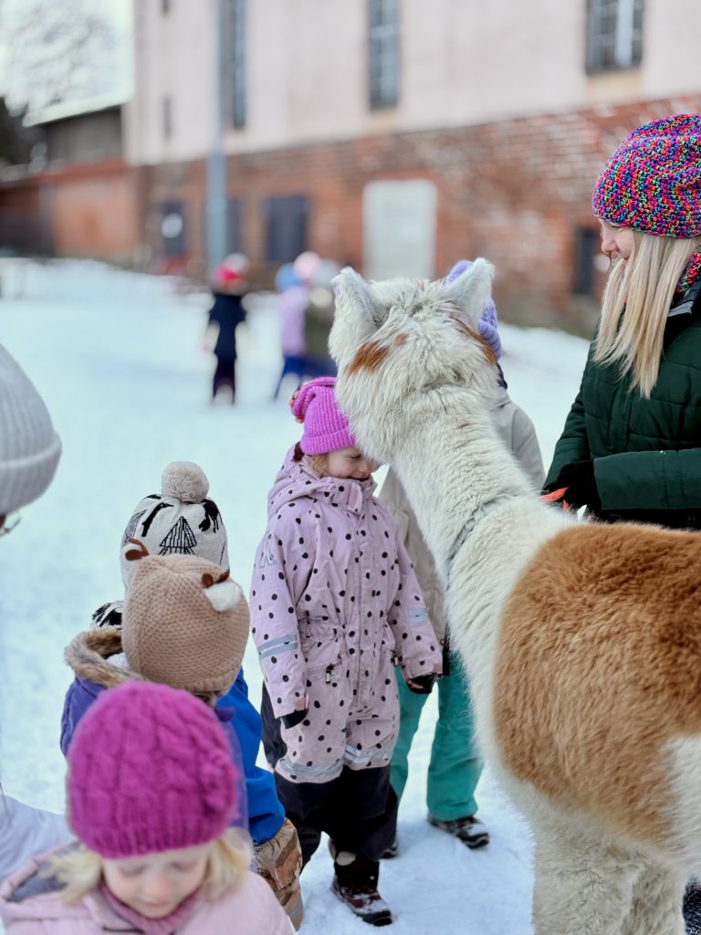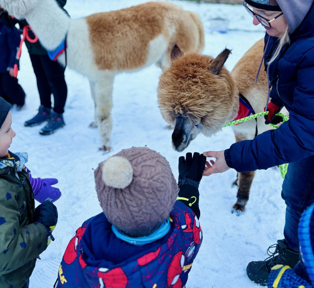 Do Fregaty przyjechały alpaki z farmy w Bojanie. Dzieci mogły je karmić i dowiedziały się, jak bezpiecznie do nich podchodzić. Było sporo pytań, a w odpowiedzi dużo ciekawostek. Dodatkowo, przy odbiorze dziecka była możliwość zrobienia zdjęcia pamiątkowego.